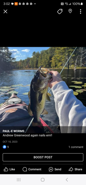 Andrew with another nice Bass caught on a #13 5" Twin Tail Skirted Grub!